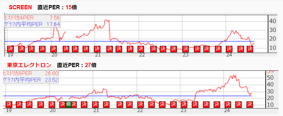 元村:少し前までは両社のPER水準は同じくらいだったのですが、東京エレクトロンが注目されて評価が上がった一方でSCREENの評価はそれほど上がりませんでした。
