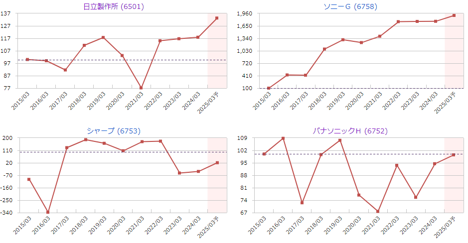 一方で、戦略転換に苦戦し、厳しい状況に直面している企業もあります。シャープ<6753>と東芝は、かつての日本を代表する電機メーカーでしたが、現在は大きな転換点に立たされています。