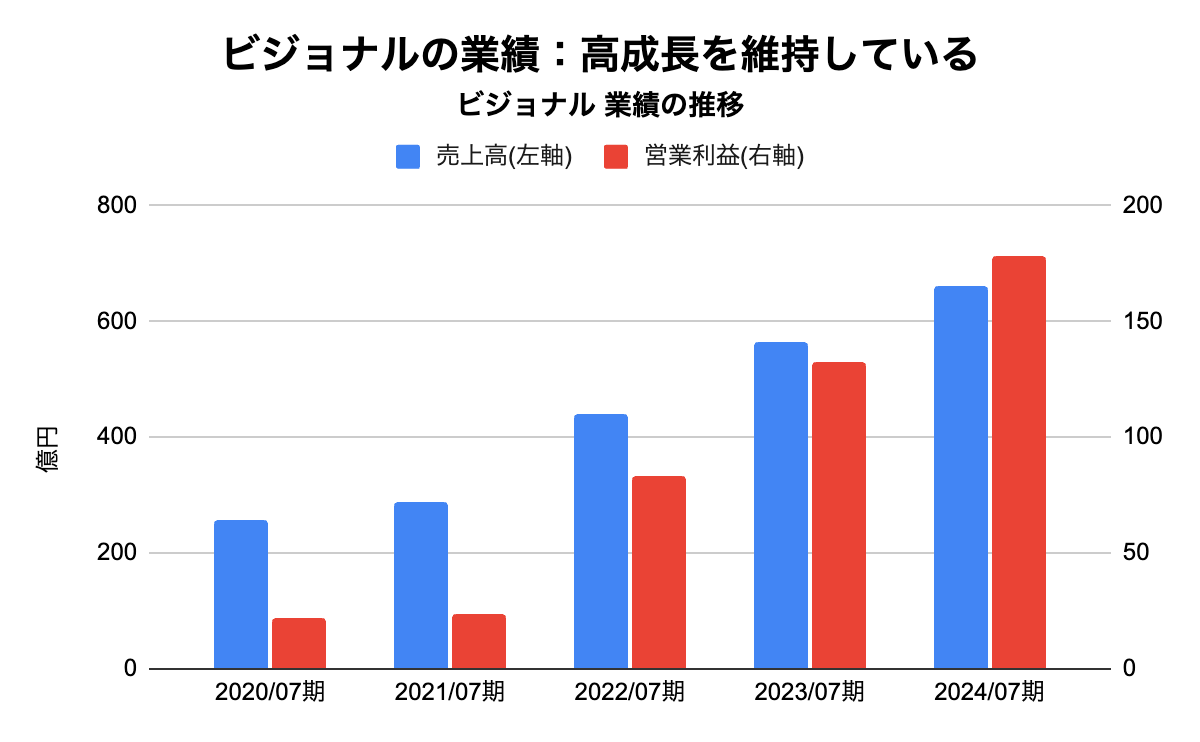 売上高、営業利益ともに順調に成長し、24年7月期の売上高は764億円、営業利益191億円を達成しています。利益率も26%と高水準です。