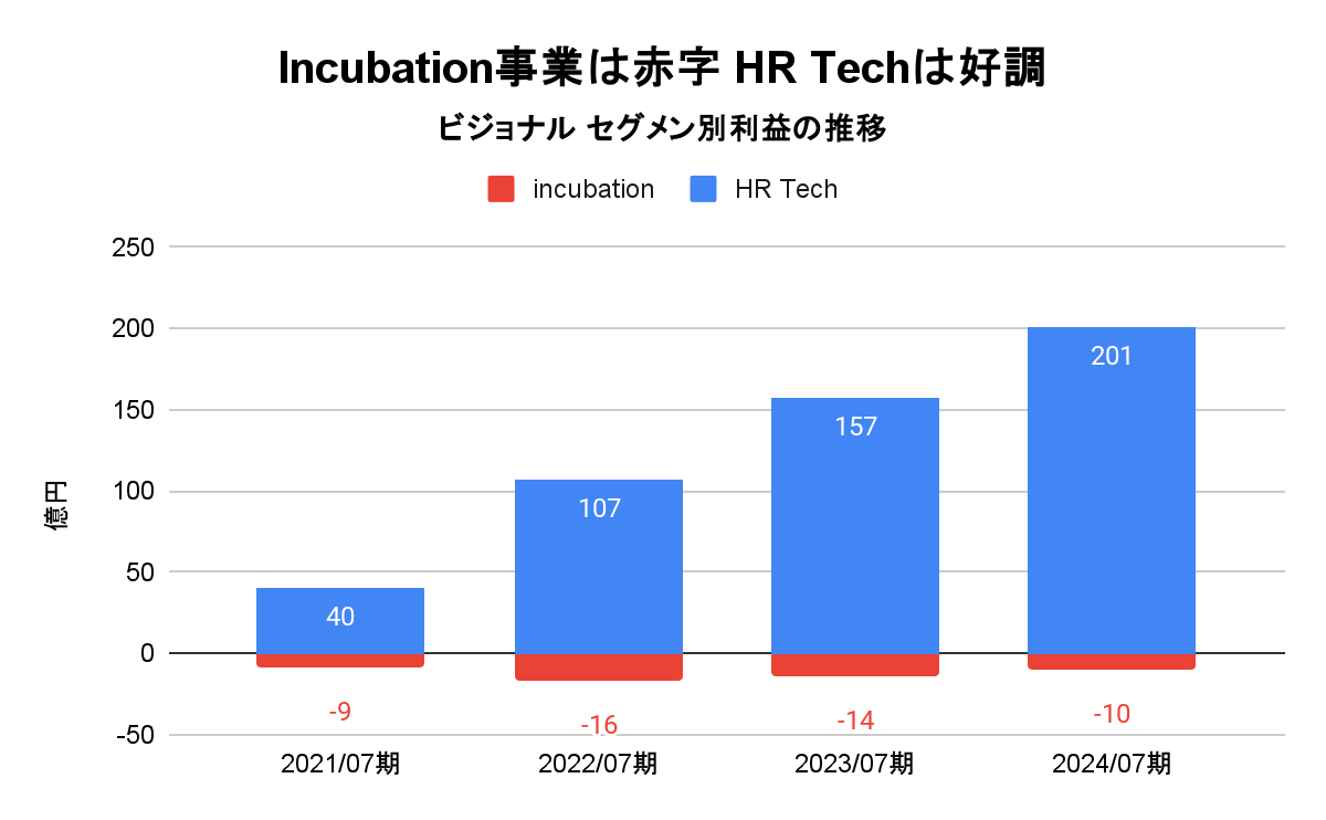 さらに、利益を見るとIncubation事業は赤字であり、やはりHR Tech事業が事業の中心です。