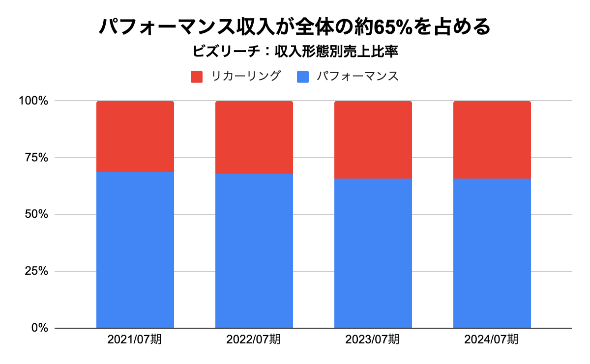 収入の比率はビズリーチ単体で、パフォーマンス収入の比率が高くなっています。
