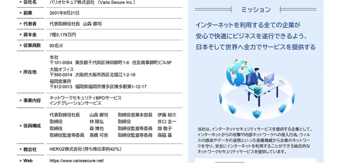 当社のビジネスは、会社の中に情報システム部がしっかりと存在していない「ひとり情シス」という言葉もありますが、なかなかそこに予算をかけられない、人員をかけられない、という会社が、「自社でそのようなものを準備しなくても、バリオセキュアに丸投げして大丈夫」というビジネスモデルです。