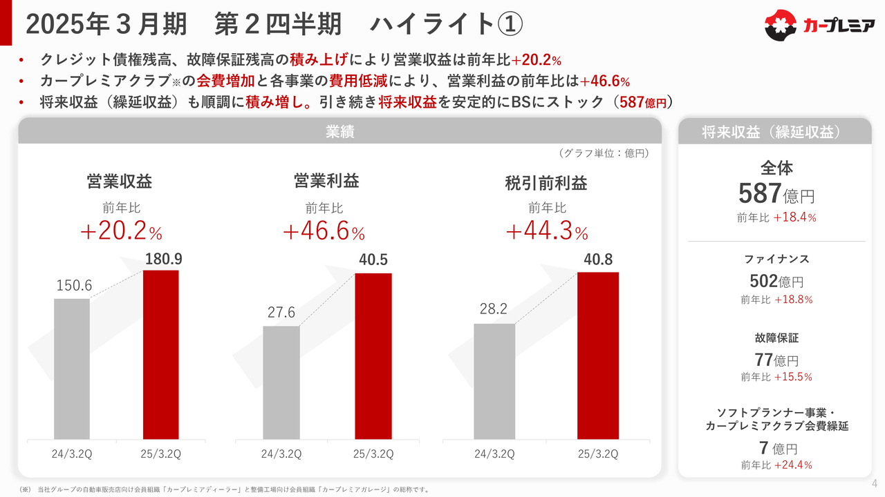 こちらは、中期経営計画の戦略の大きな部分である「カープレミアディーラー」を中心に申し込みが増加し、しっかりとベースを伸ばせていることによるものです。