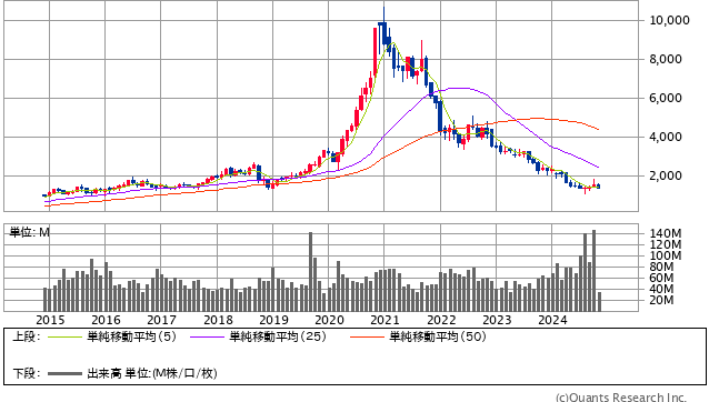一時は高かった株価から大幅に下がっていますが、それでもなお決算を受けて下がってしまうという状況です。