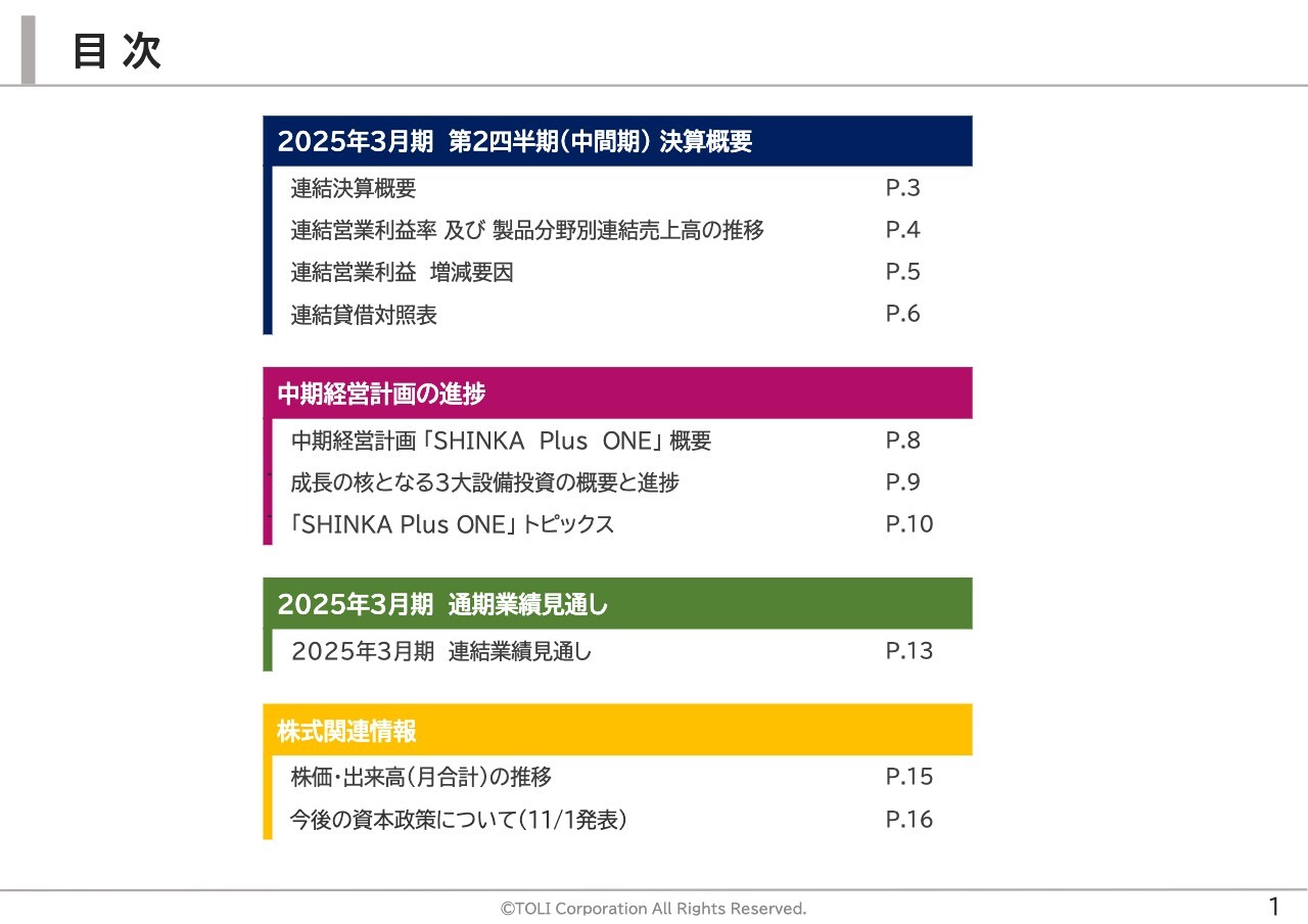 永嶋元博氏:こんにちは。東リ株式会社代表取締役社長の永嶋です。ただいまより、2025年3月期中間期の決算説明を行います。