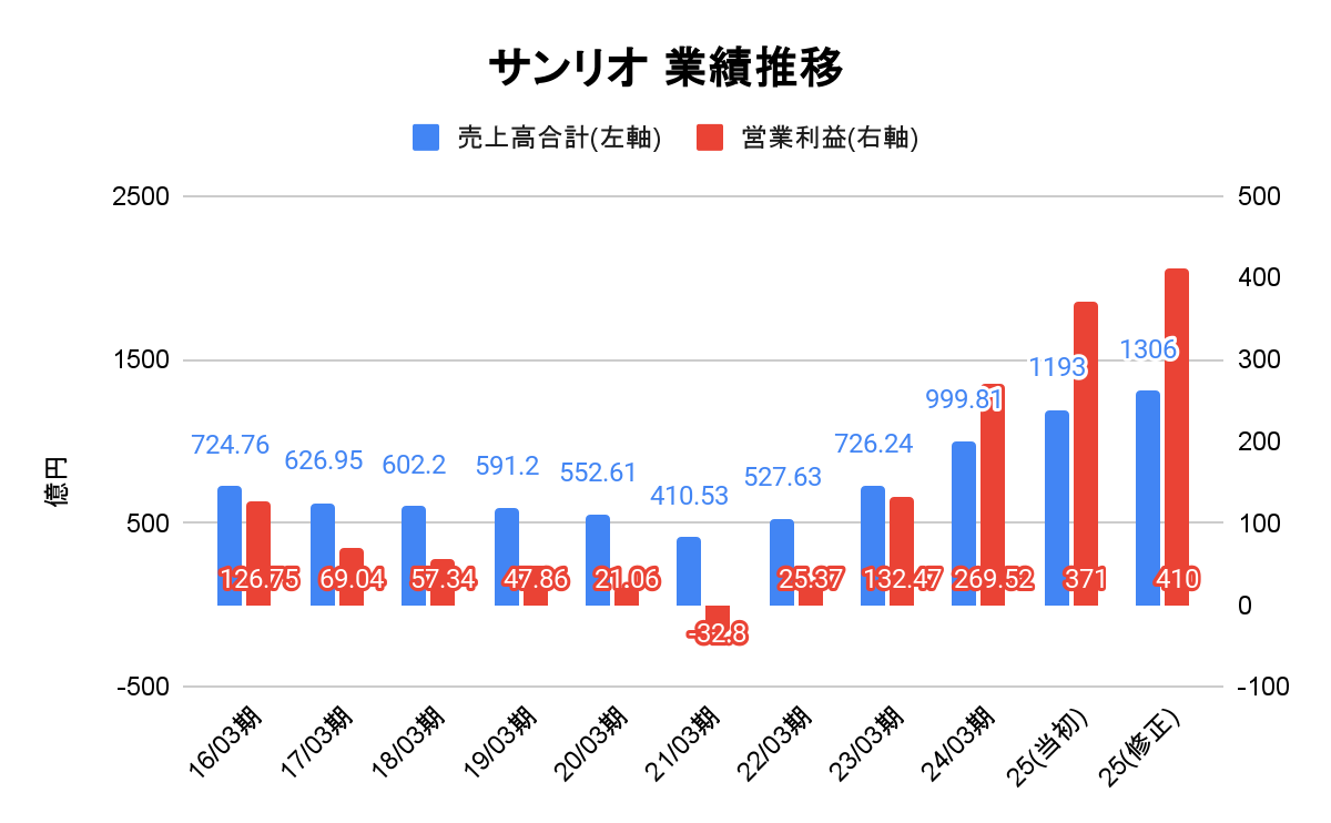こういった社内整備とマーケティング戦略の見直しによって、サンリオの人気が見直され、今の業績の急拡大につながっていると言えるでしょう。