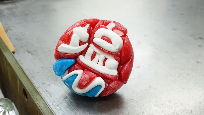 「組み飴」とは金太郎飴に代表される、切っても切っても同じ絵柄が出てくる飴のこと。伝統工芸である組み飴に企業ロゴやキャラクターの顔などを組み込み、景品や記念品、キャンペーンアイテムとして活用してもらおうと考えたのだ。