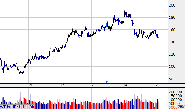 2025年2月7日に決算が発表されてから、さらに株価は下がっています。