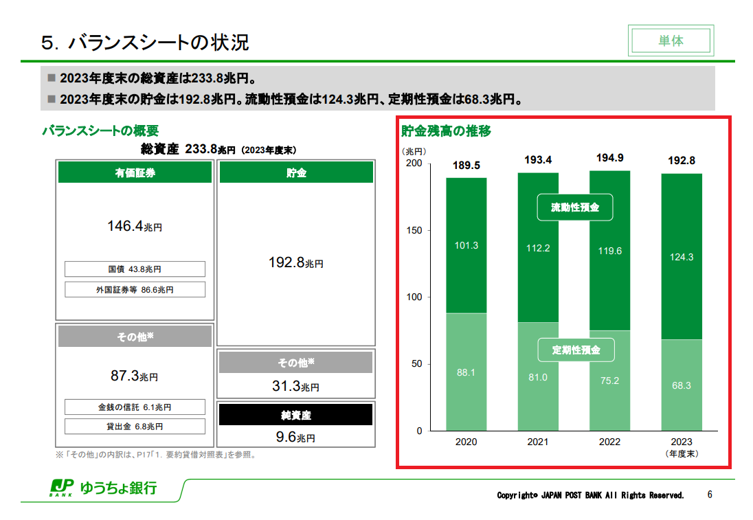 ゆうちょ銀行にとって預金残高の減少は、将来の利益にもマイナスの影響を与える可能性が高くネガティブな要因といえます。