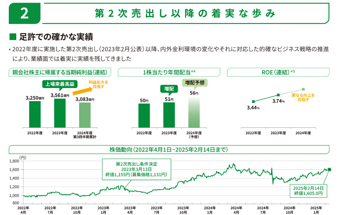 <ゆうちょ銀行の株価>