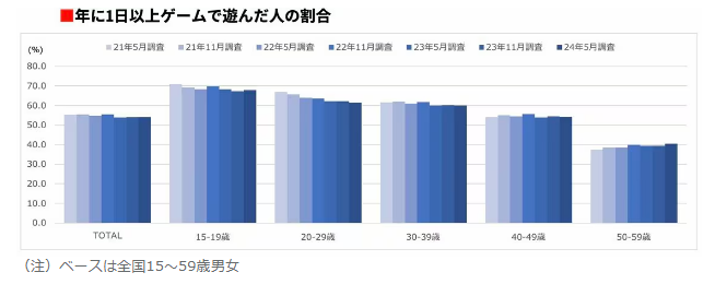 一方で、50代以上の層でゲームプレイ人口が増加傾向にあるという興味深いデータもあります。これは、かつてゲームをプレイしていた世代が年齢を重ね、時間やお金ができたことで再びゲームに回帰しているのかもしれません。この層の増加は、今後の市場を底堅く支える要因になる可能性も考えられます。