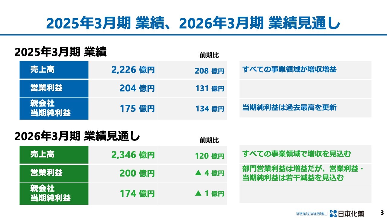 2025年5月14日に発表された、日本化薬株式会社2025年3月期決算説明の内容を書き起こしでお伝えします。