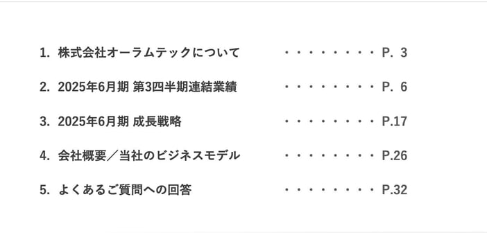 2025年6月期第3四半期の業績に関するご説明は以上です。なお、2025年6月期の成長戦略は、前期の通期決算説明会でお伝えしたためご説明を割愛します。