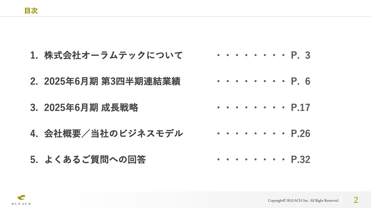 小西勲氏:株式会社ブリーチ取締役CFOの小西と申します。本日は、当社の2025年6月期第3四半期決算発表説明会にご参加いただき、ありがとうございます。