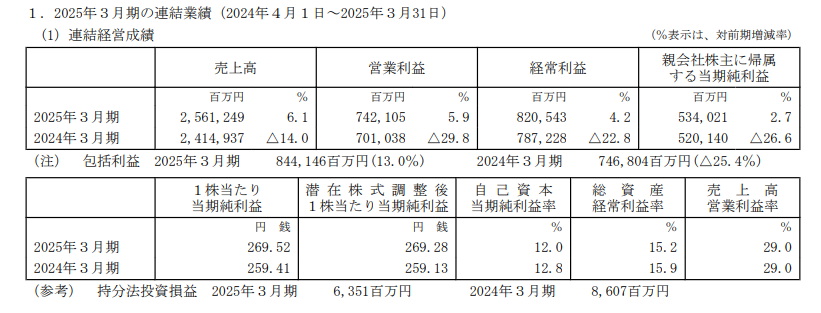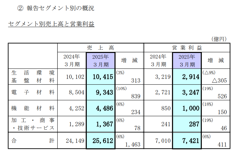 一方、電子材料事業は前年比で売上約10%増、営業利益約20%増と、比較的順調に推移しています。半導体市場全体はまだら模様ですが、信越化学はこの分野で良い位置にいると言えます。