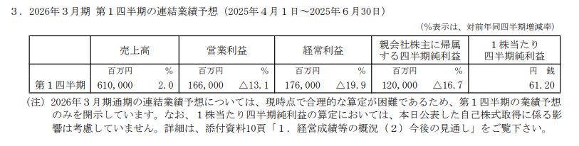 一方で、2025年3月期第1四半期の予想は、増収減益の見込みです。