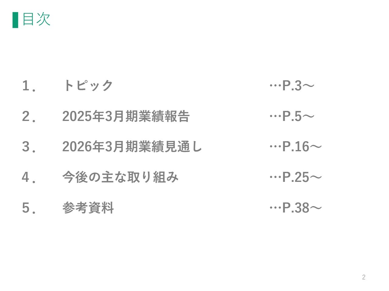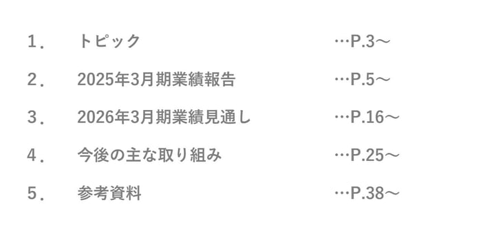 本日は2025年3月期の業績報告、2026年3月期の通期業績見通しについては私より、今後の主な取り組みについては社長の池田よりお話しします。