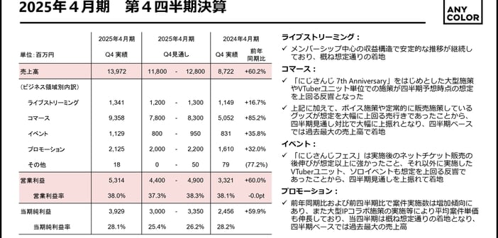 2025年6月11日に発表された、ANYCOLOR株式会社2025年4月期決算発表の内容を書き起こしでお伝えします。