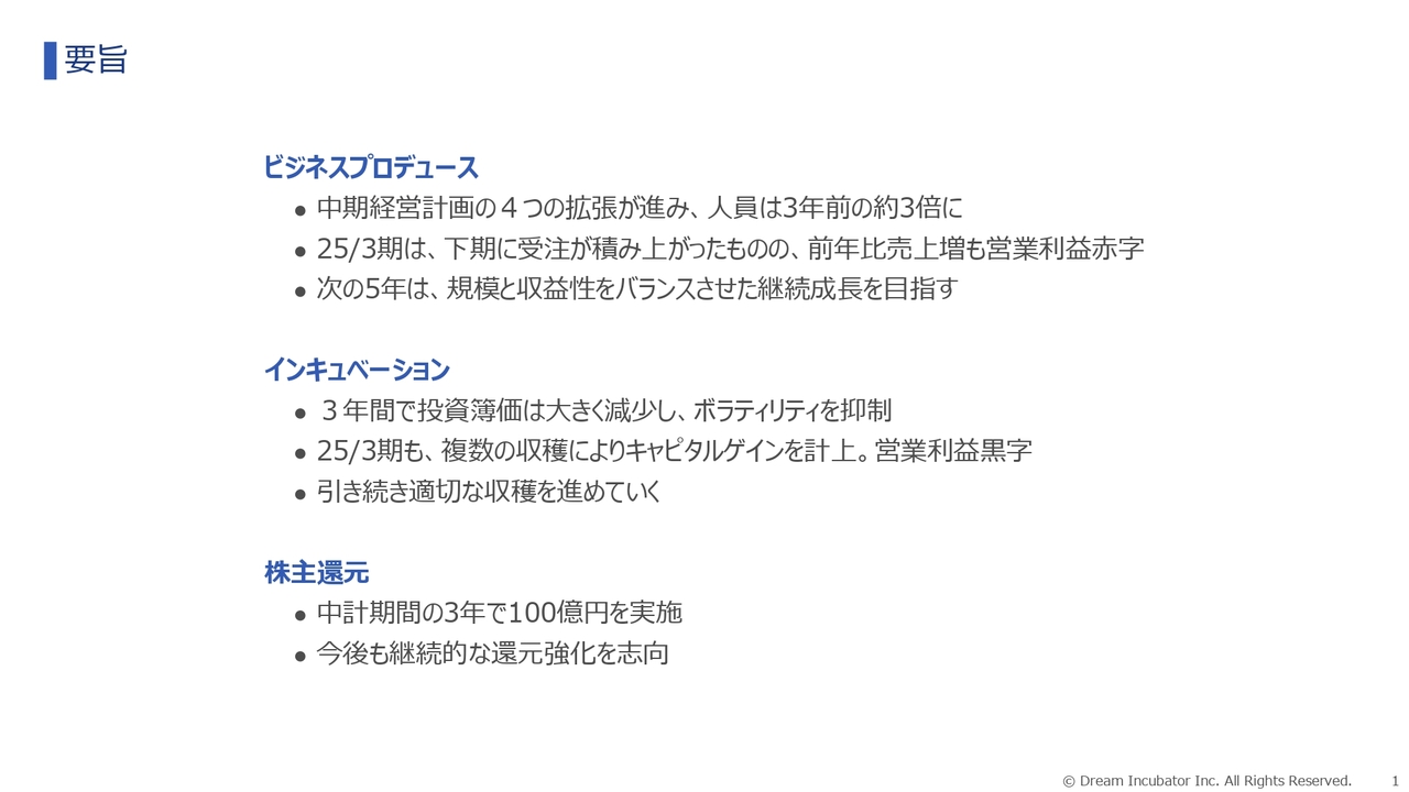 2025年6月23日に発表された、株式会社ドリームインキュベータ第25回定時株主総会の内容を書き起こしでお伝えします。