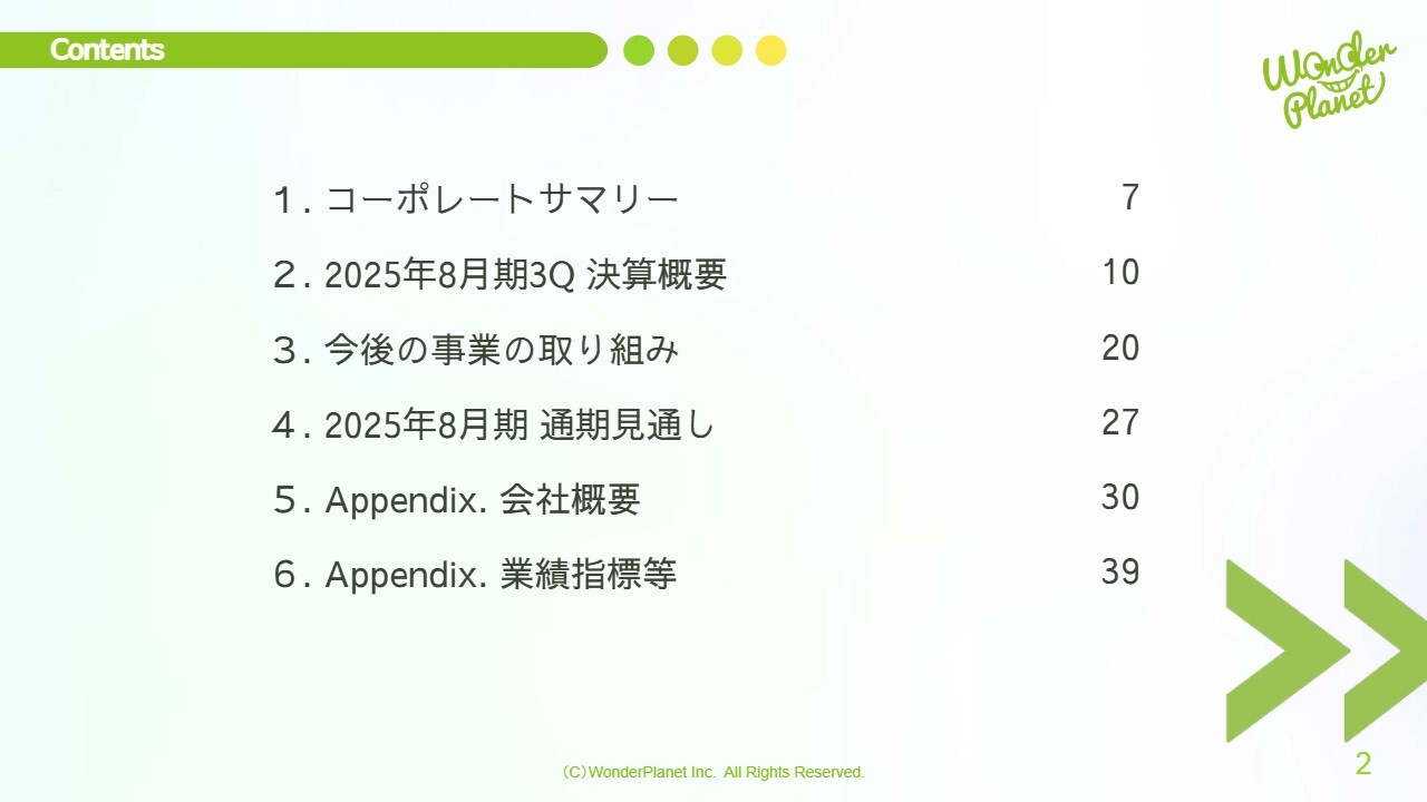 佐藤彰紀氏:ワンダープラネット株式会社2025年8月期第3四半期決算説明会を開催します。本日はご多忙の中ご参加いただき、誠にありがとうございます。本説明会は、取締役COO兼CFO佐藤よりご報告します。