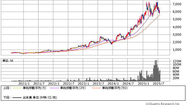 サンリオの株価は、コロナ禍前後(約500円~700円)から、現在では6,000円~7,000円台にまで上昇しており、実に約10倍、いわゆる「テンバガー」を達成しています。