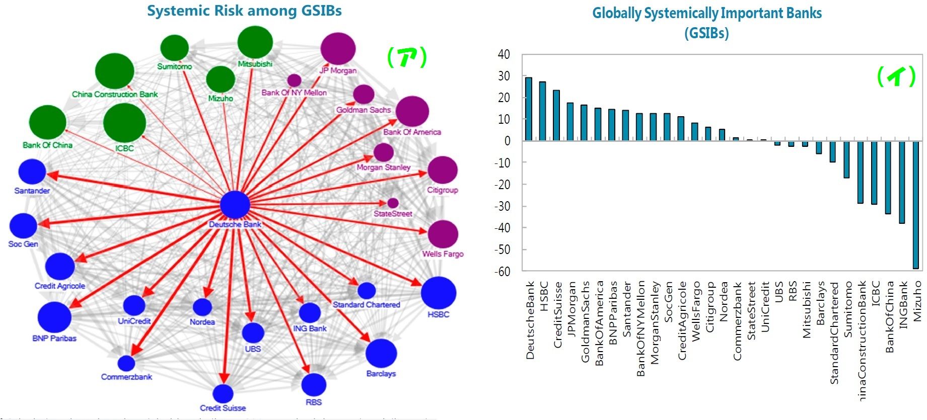 国際金融体制にとって重要な金融機関(G-SIBs)の中でも、ドイツ銀行はシステムリスクの観点から見て最重要な銀行であり、第2位はHSBC、第3位はCredit Suisseである。