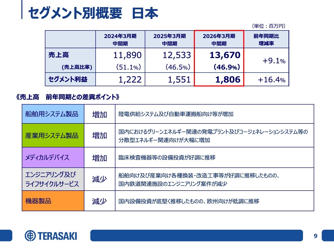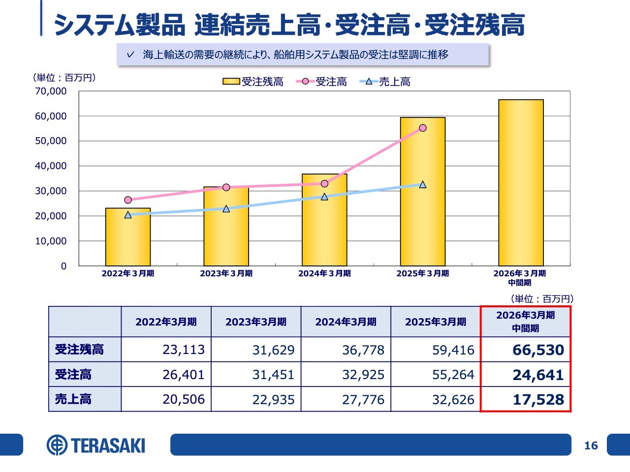 トピックとしては、海上輸送の需要の継続により、船舶用システム製品の受注が堅調に推移し、受注残高は引き続き増加しています。