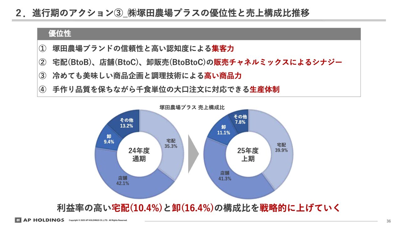 上半期の営業利益率については、宅配事業が10.4パーセント、卸が16.4パーセントと、非常に高い数値となっています。今後もこれらの構成比を戦略的に引き上げる取り組みを進めていきたいと考えています。