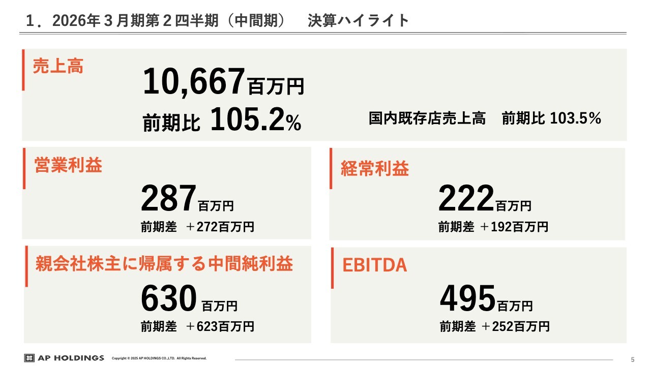 1. 2026年3月期第2四半期(中間期) 決算ハイライト