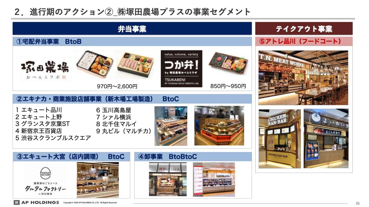 続いて、進行期のアクションについてです。中食事業に関しては、塚田農場プラス社の代表取締役である森尾が来ているため、森尾にバトンタッチします。