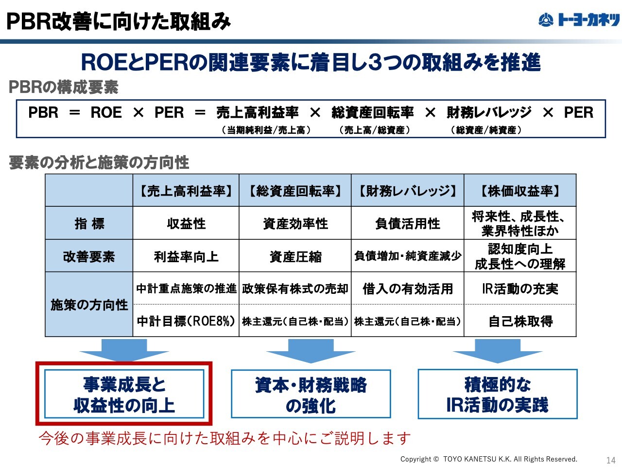 そのような認識のもと、資本コストや株価を意識した経営については、スライド下方に記載の取り組みを継続しています。本日は、特に赤枠で囲った「事業成長と収益性の向上」の取り組みについてご説明します。