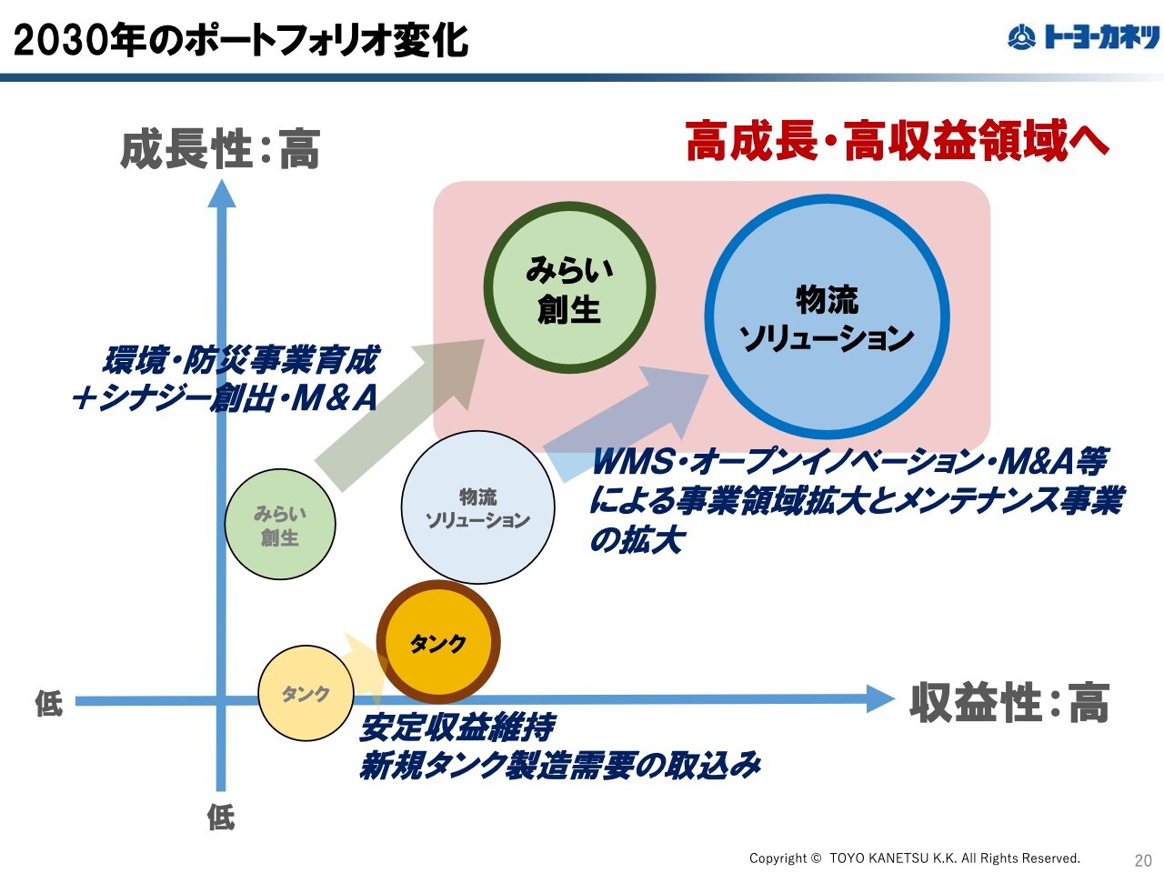 以上のご説明を踏まえ、現行の中期経営計画の先、2030年の事業ポートフォリオを想定した図が、こちらのスライドです。