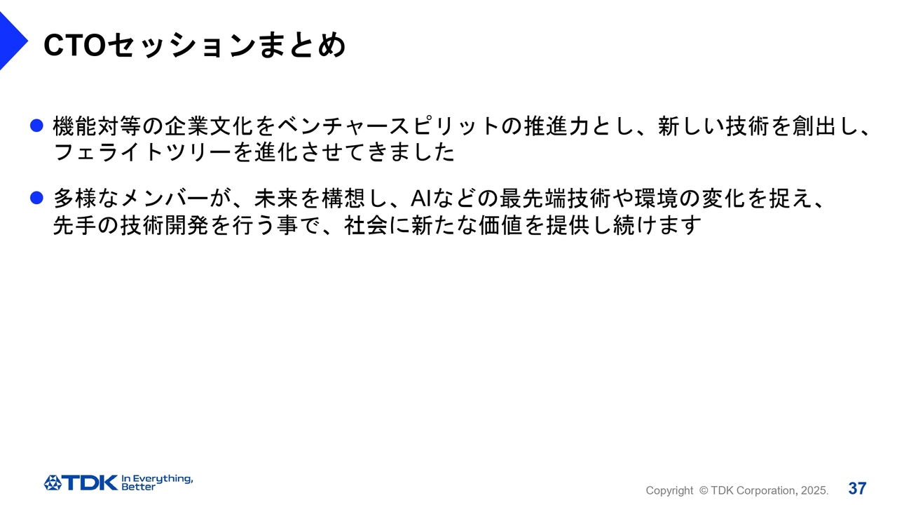 齋藤:すぐフランスに応援に行きますので、引き続きがんばってもらいたいと思います。「TDK United」として、ぜひ開発をフランスでも加速していってください。