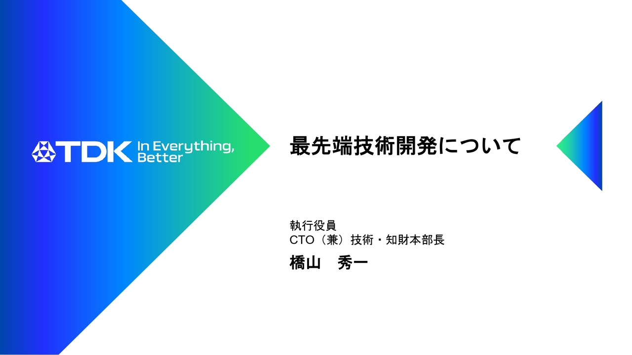 2025年9月1日に開催された、TDK株式会社「TDK Investor Day 2025 未財務資本を通じた企業価値向上に向けて」の内容を書き起こしでお伝えします。