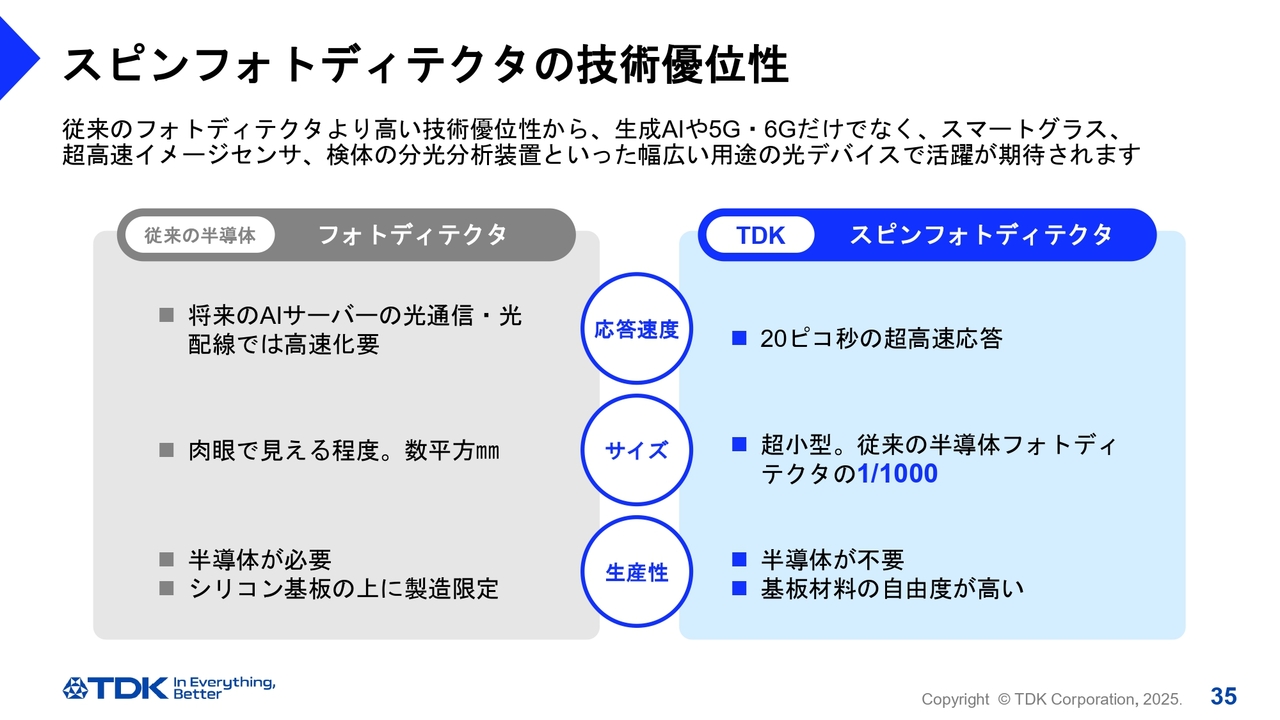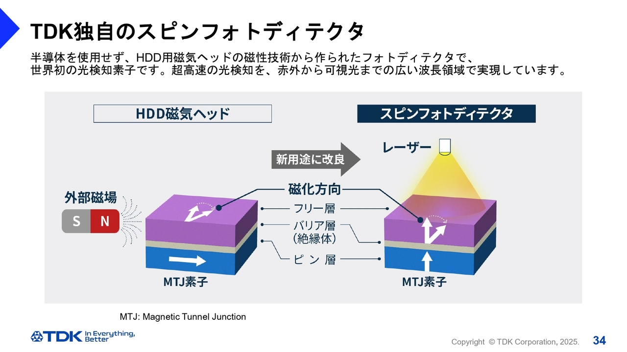 TDK独自のスピンフォトディテクタ