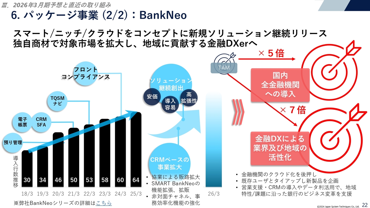 パッケージ事業の「BankNeo」です。もともとは地方銀行、信用組合、信用金庫をターゲットとして、スマート、ニッチ、クラウドをモットーに展開していました。