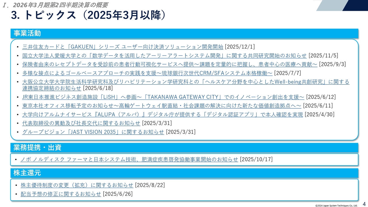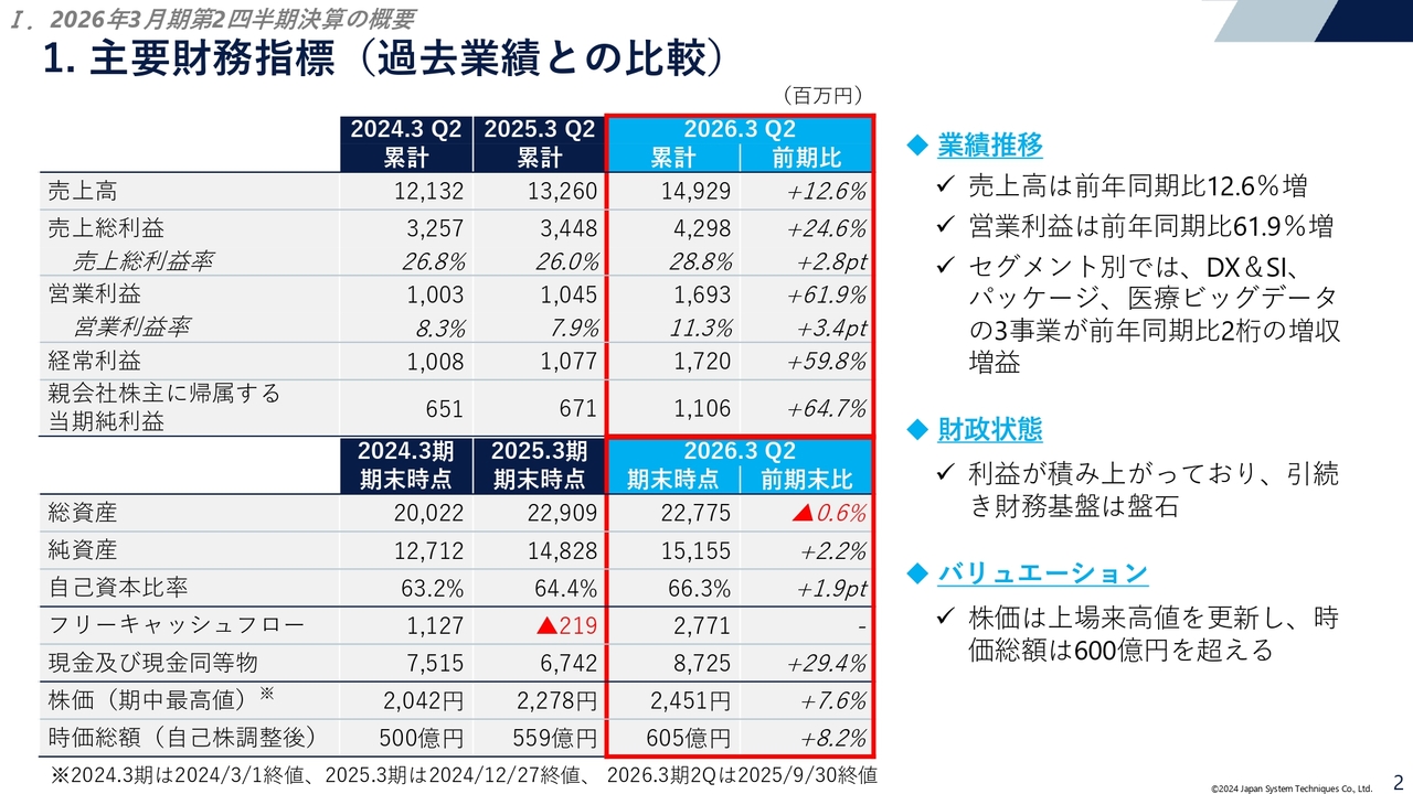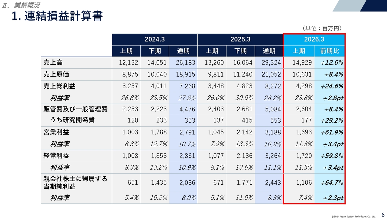 2025年12月10日に発表された、日本システム技術株式会社2026年3月期第2四半期決算説明の内容を書き起こしでお伝えします。