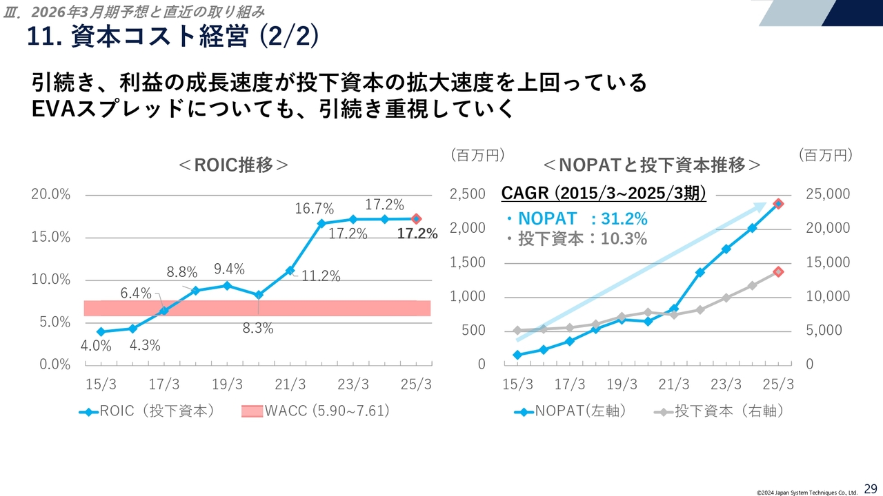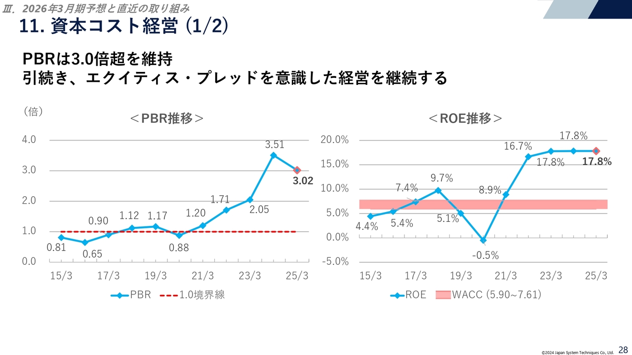 資本コスト経営についてです。期末の数字ですので、前回6月に開示した内容と数字的にはほぼ変化はありません。
