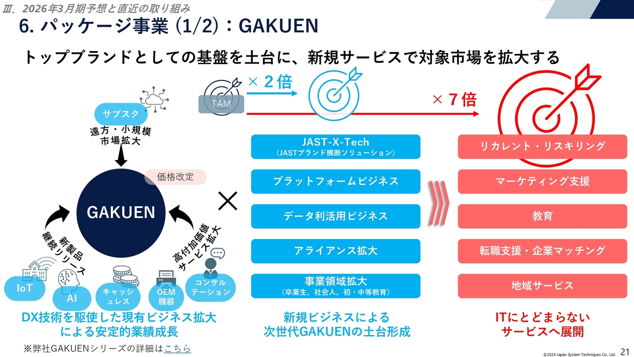こちらは非常に高収益ですが、昨年度にパッケージ及びSE単価を値上げし、この進行期から本格的に収益貢献するところです。価格改定に伴い、離脱した学校は一切ありませんでした。案件を取りに行く時も、最近はほとんど値引きせずに進めていますので、そのあたりが収益の拡大につながっていると捉えています。
