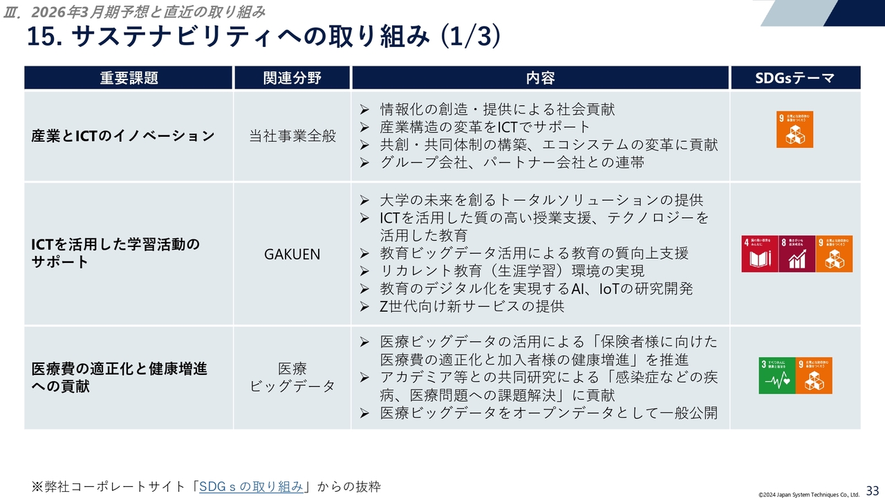 また、昨年度に当社グループ入りしたケーシップ社は、昨年度は立て直しのため低調に推移しましたが、今期は収益性がかなり向上しており、医療ビッグデータ事業についても増収増益で着地しています。