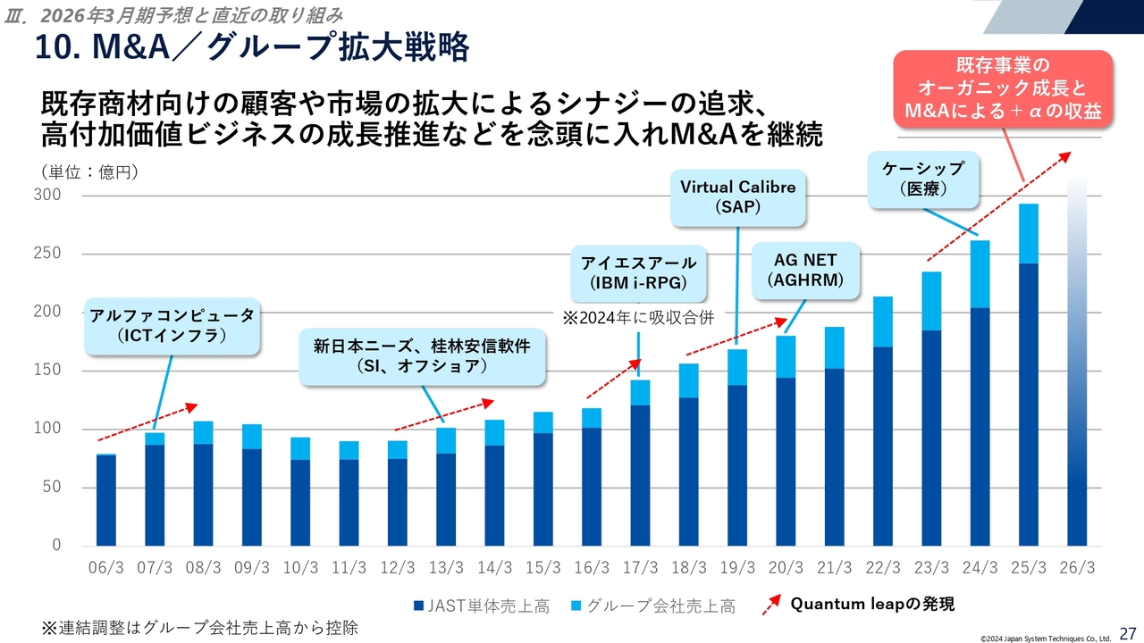M&Aは、これまでどおり実行に向けてさまざまな調査を実施しているところですが、3月にリリースした「JAST VISION 2035」期間中の中長期計画を策定している最中のため、その中でM&A等の具体的な戦略も検討しています。
