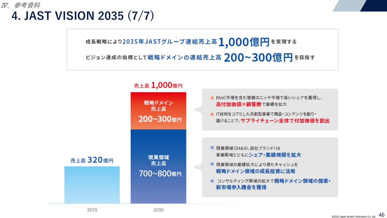 最後になりますが、3月に長期ビジョン「JAST VISION 2035」をリリースしました。あくまでも概要部分のリリースでしたので、実際のスタートは次年度、2026年度からとなります。