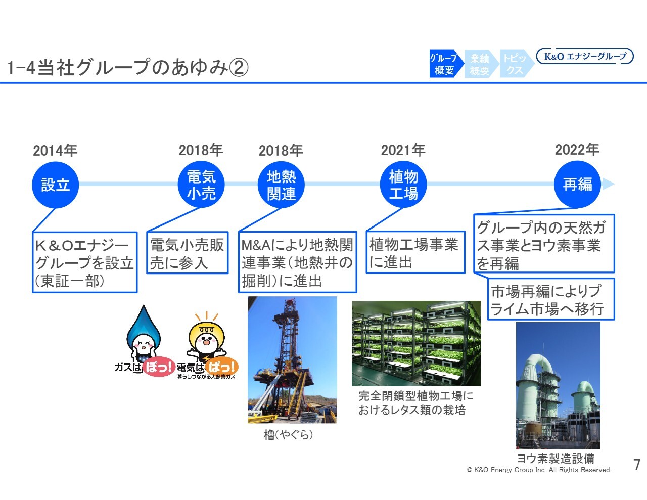 2022年には、事業再編を行いました。K&Oヨウ素と関東天然瓦斯開発は、それぞれで天然ガス事業とヨウ素事業を展開していましたが、ヨウ素はヨウ素の専業、天然ガスは天然ガスの専業とする方針に基づき事業を整理しました。