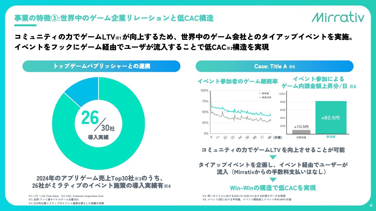 赤川:まず、ライブゲームはゲーム体験自体が新しいものです。当社は2021年に単月黒字化を達成した後、ライブゲームに投資を開始してゼロから立ち上げており、まだまだこれからという段階です。