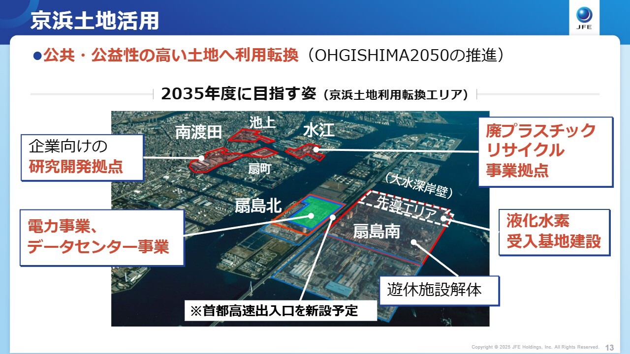 佐藤:続いて、京浜エリアの製鉄所跡地についてですが、土地活用が進んでいるとのことです。今後のビジョンについて教えてください。