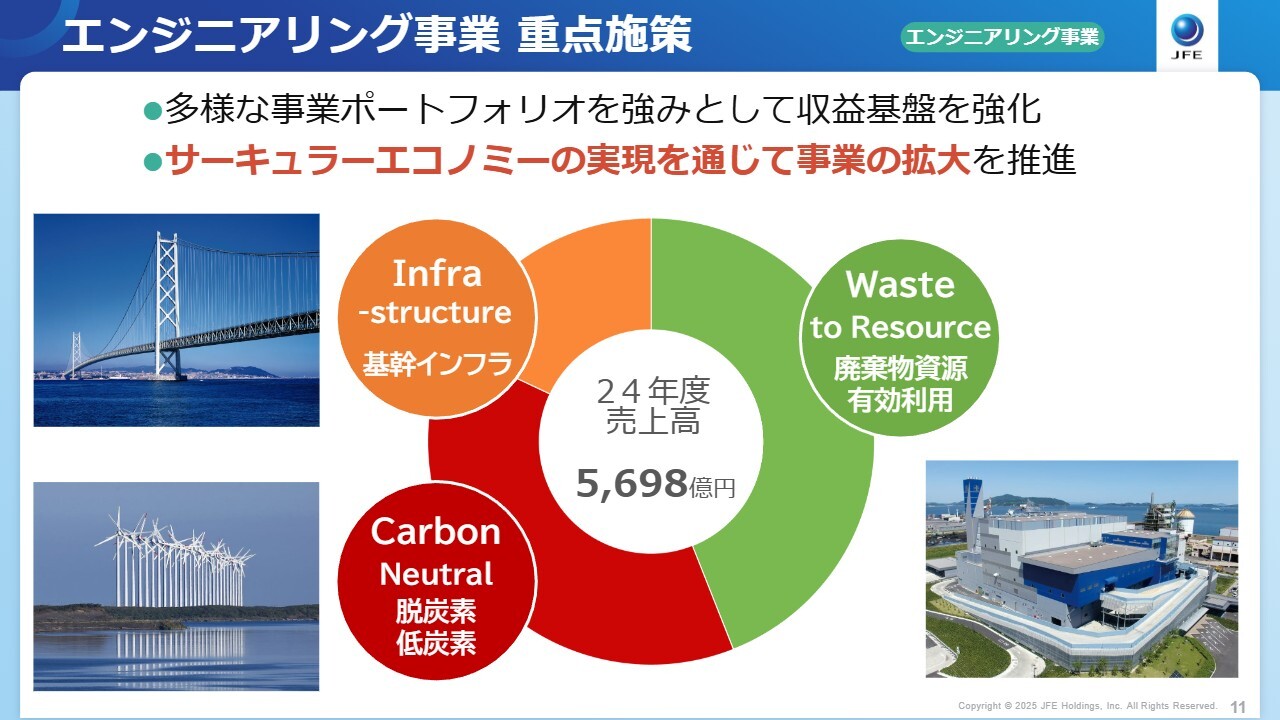 佐藤:ここまで主力の鉄鋼事業の重点施策についてうかがいましたが、続いてはエンジニアリング事業についてです。こちらの成長戦略や重点施策には、どのような事項を掲げているのでしょうか?