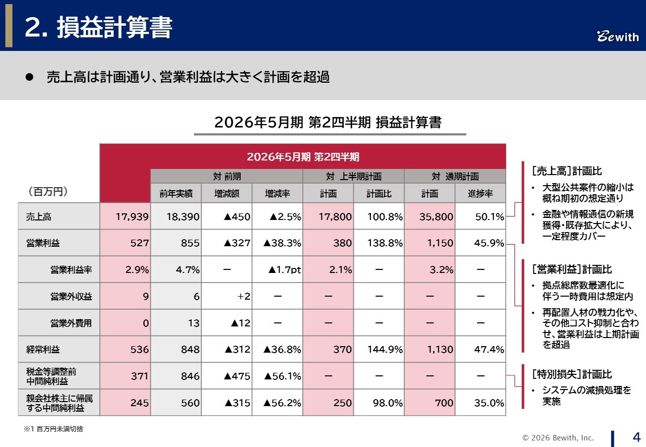 1 2026年5月期第2四半期決算概況