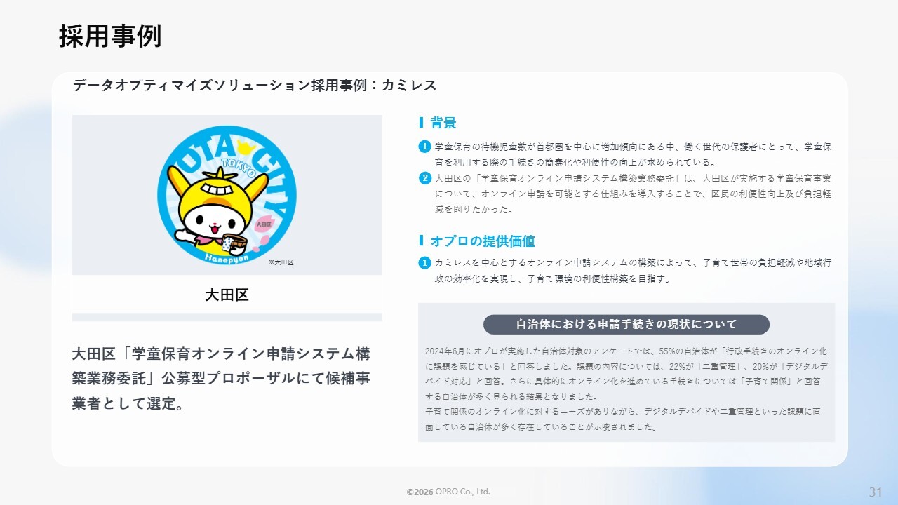 大田区の「学童保育オンライン申請システム」は当社が直接入札で受注した案件で、当社のコンサルティングサービスを提供しました。