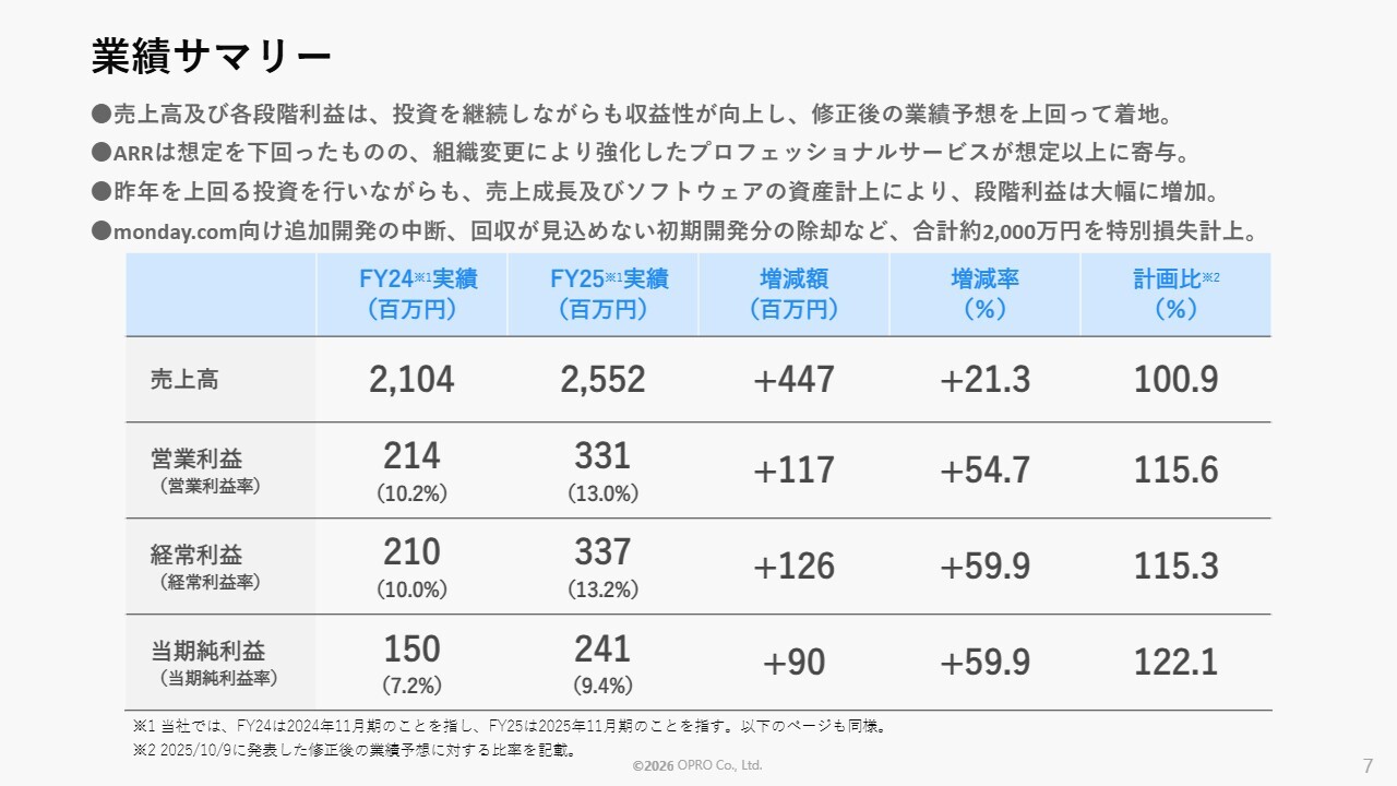 2026年1月6日に発表された、株式会社オプロ2025年11月期決算説明の内容を書き起こしでお伝えします。