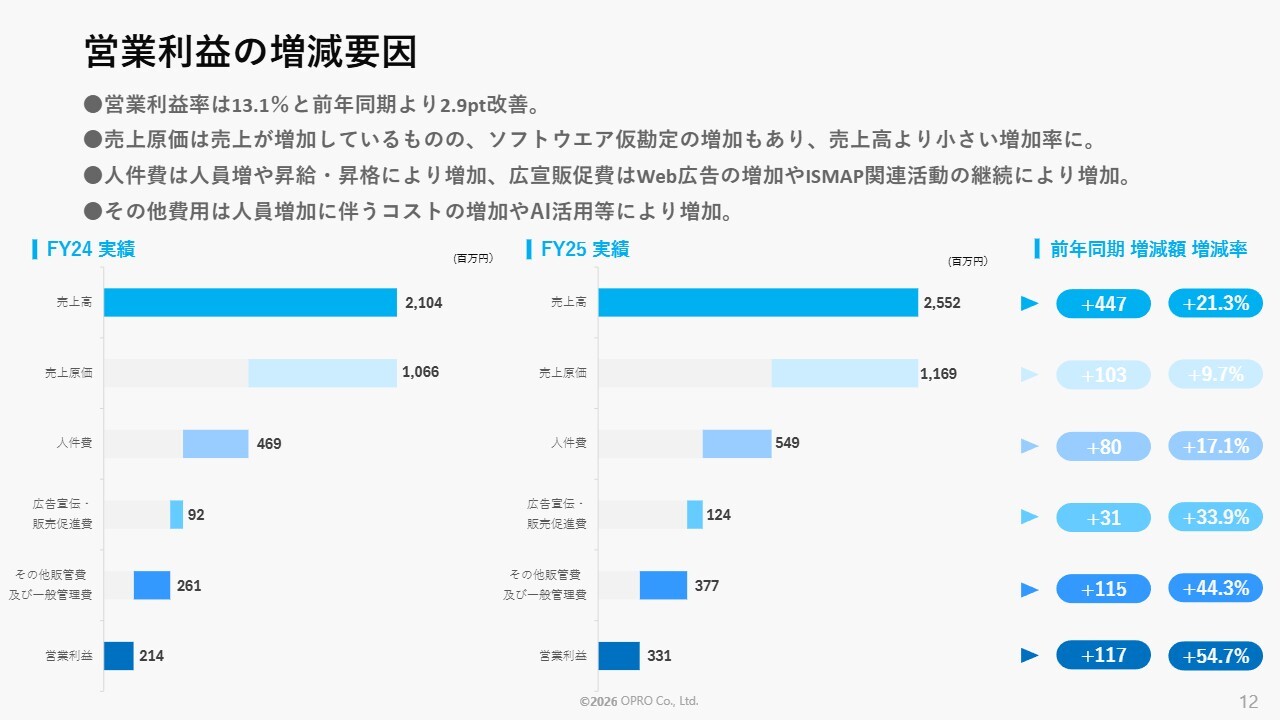 2026年11月期は強気の計画となっていますが、特に下期に、2025年11月期に実施した投資効果が現れてくるものと考えています。「ISMAP」の効果は2026年6月以降に見えてくる見込みです。そのため、当社では下期に一気に加速する計画としています。